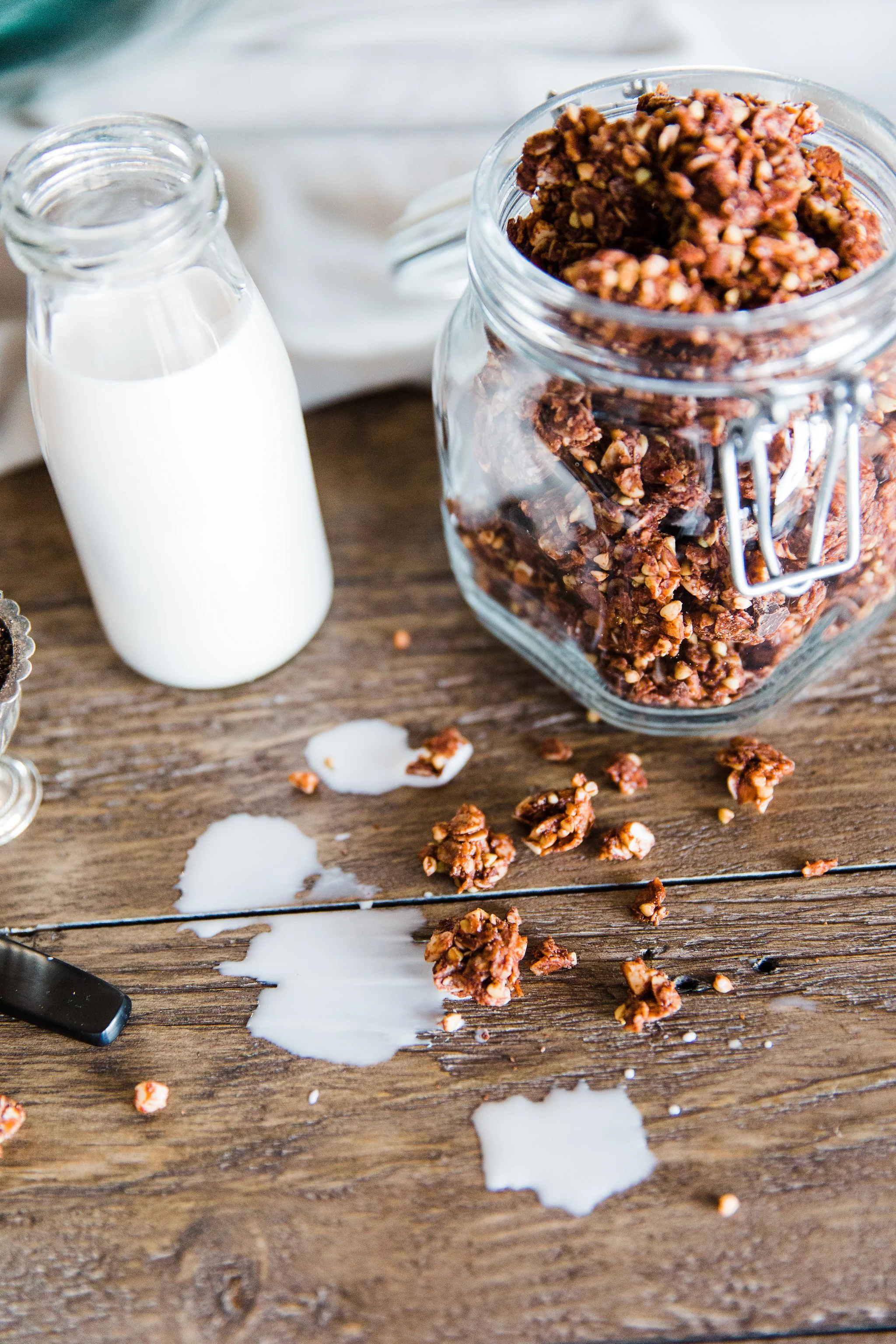 Enjoy this Chocolate Granola by the handful; atop your favorite smoothie, yogurt or chia pudding; or my personal favorite, swimming in a bowl of homemade dairy free milk with fresh mango or berries.