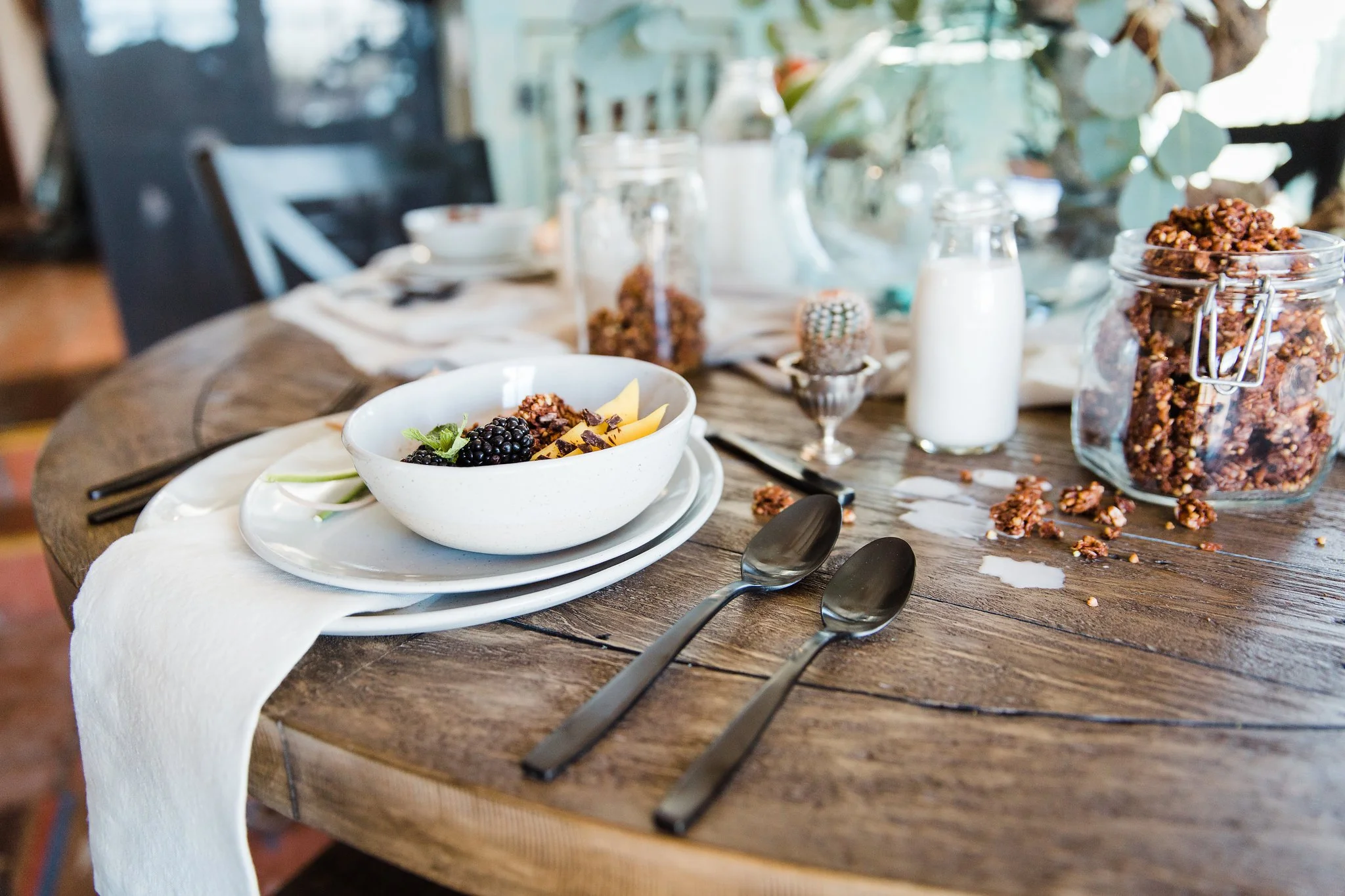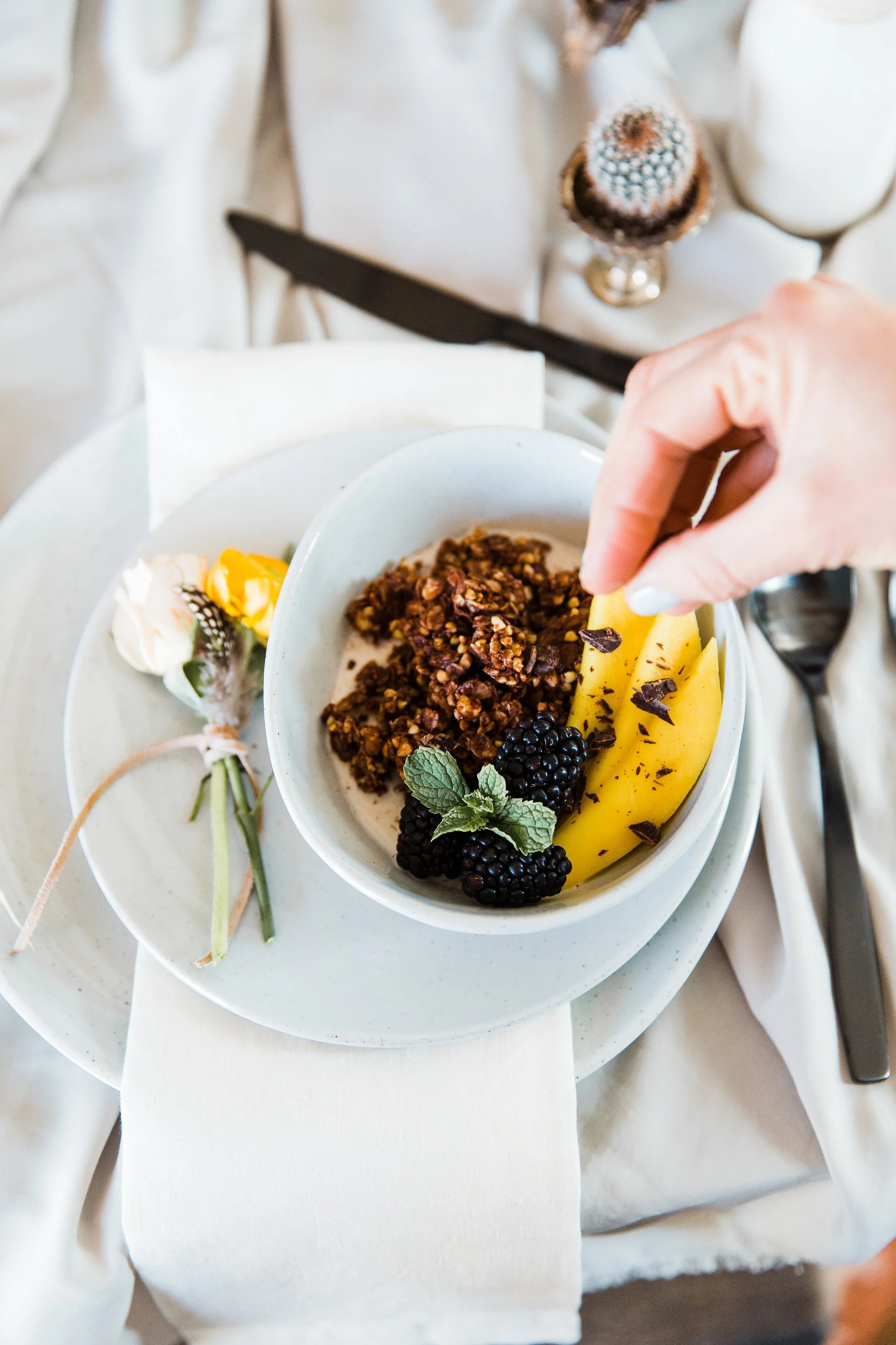 This collaboration with Manmade & Sage and Arielei Kinzer made me want to work with these women a whole heckuva lot more. Feeling inspired by the work (and excitement) of others is truly a catalyst for great things. While we can't be with you when you make this granola, I sure hope that it inspires you to get creative in the kitchen and eat this chocolatey goodness at the type of table it deserves. One dressed with style and natural beauty.