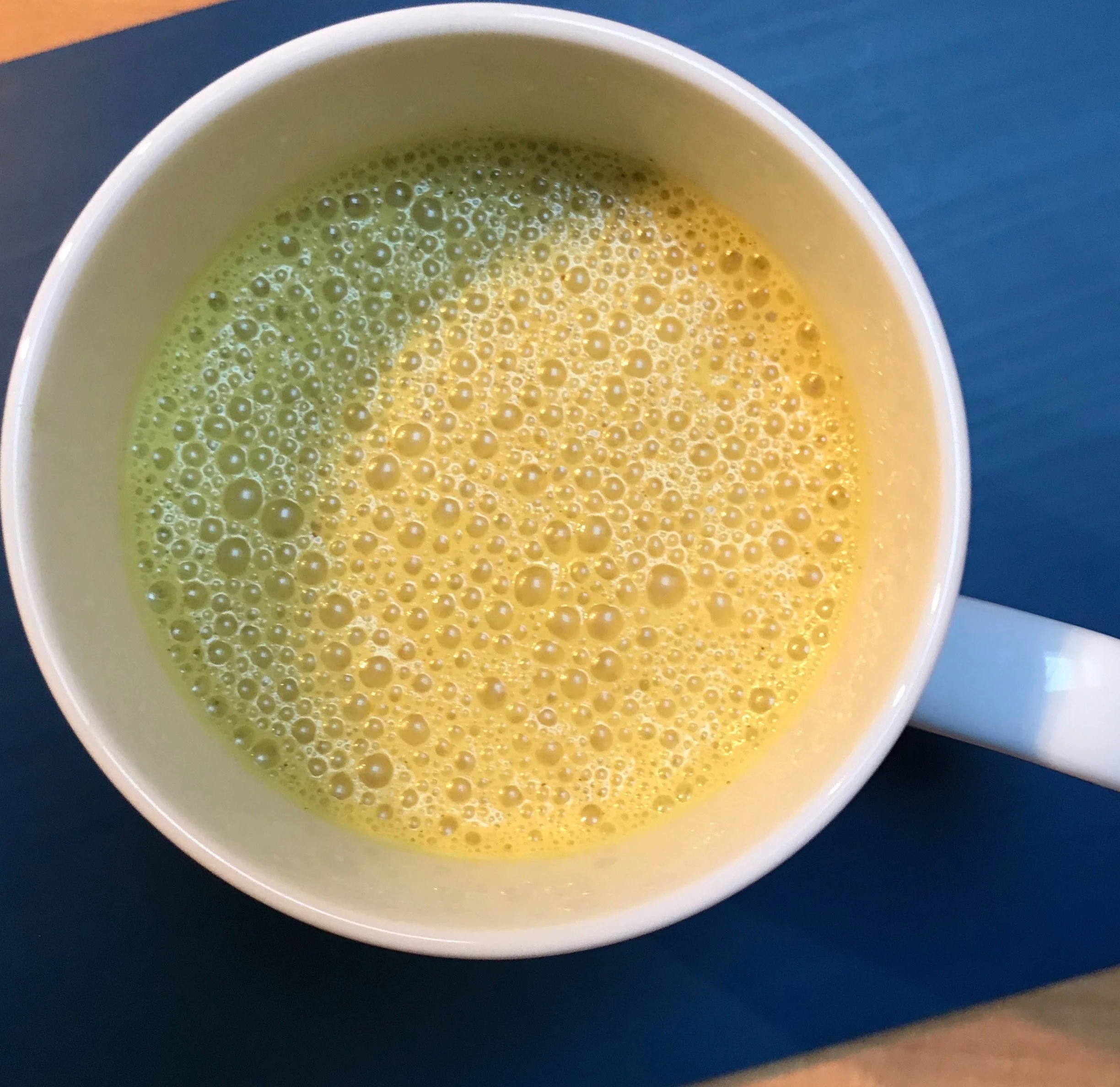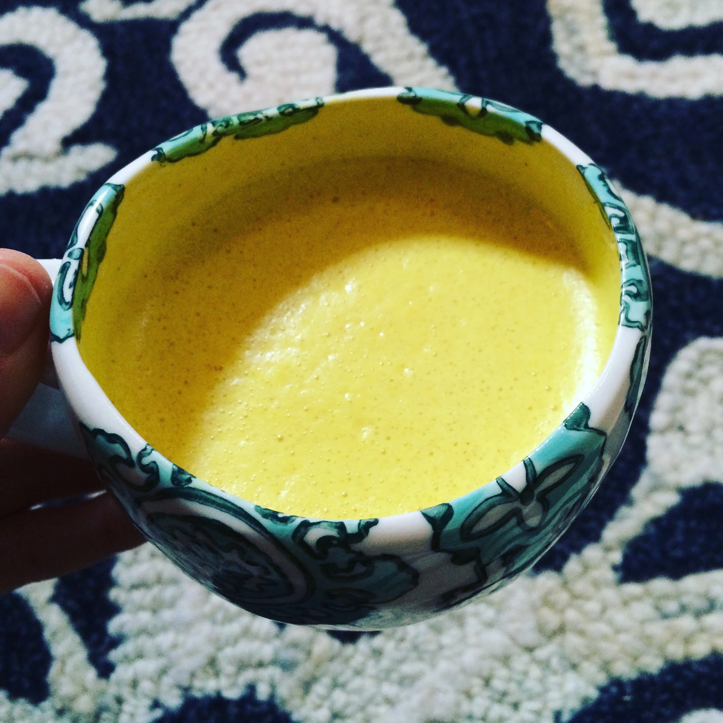 Whisk continuously until coconut butter/oil has melted and all ingredients are well combined. The turmeric will turn bright yellow (this is good!).