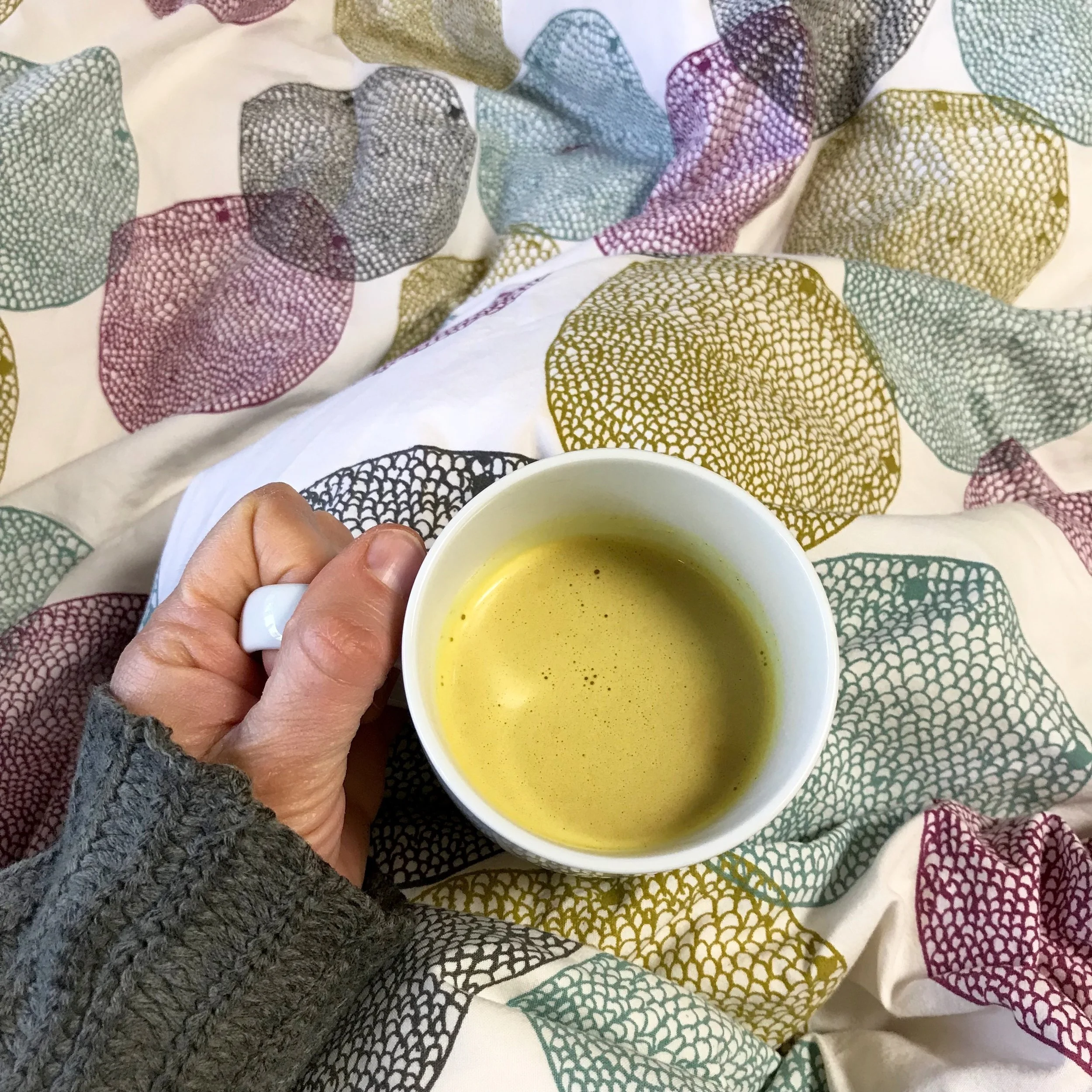 Turmeric milk is filled with anti-inflammatory compounds and it makes one helluva mess if you spill it. Who doesn't love a little danger served up with their creamy, warming beverage? Come on! Live life on the edge and go make yourself a mug full and drink it over your favorite white comforter (or in this case, your friend's white comforter. No spills! I promise, Gabriela!).