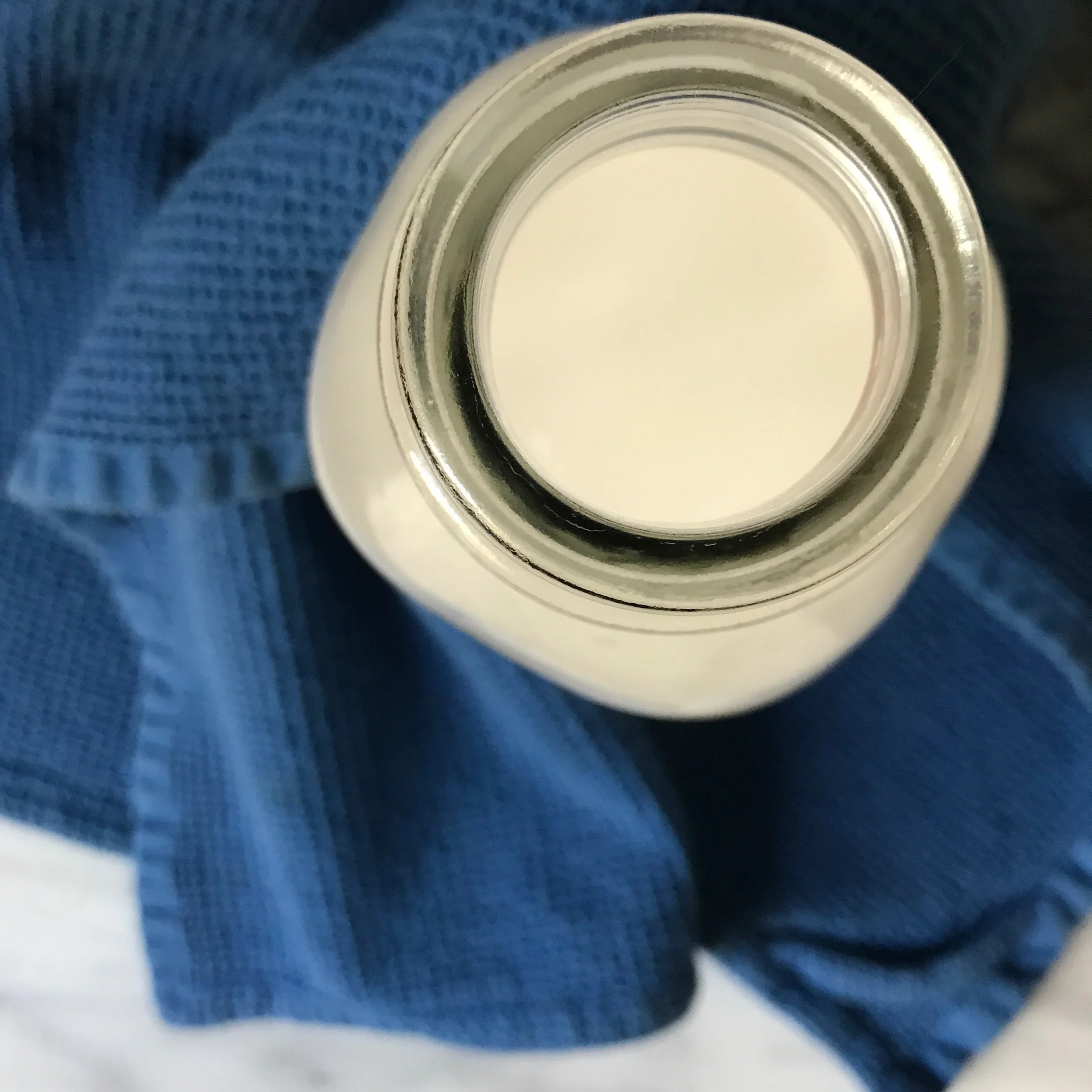 Glass container for storage (mason jar, repurposed jar, or fancy old school style milk jug)